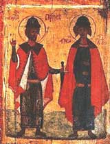 "Борис и Глеб" Новгородская школа. Середина XIY века.