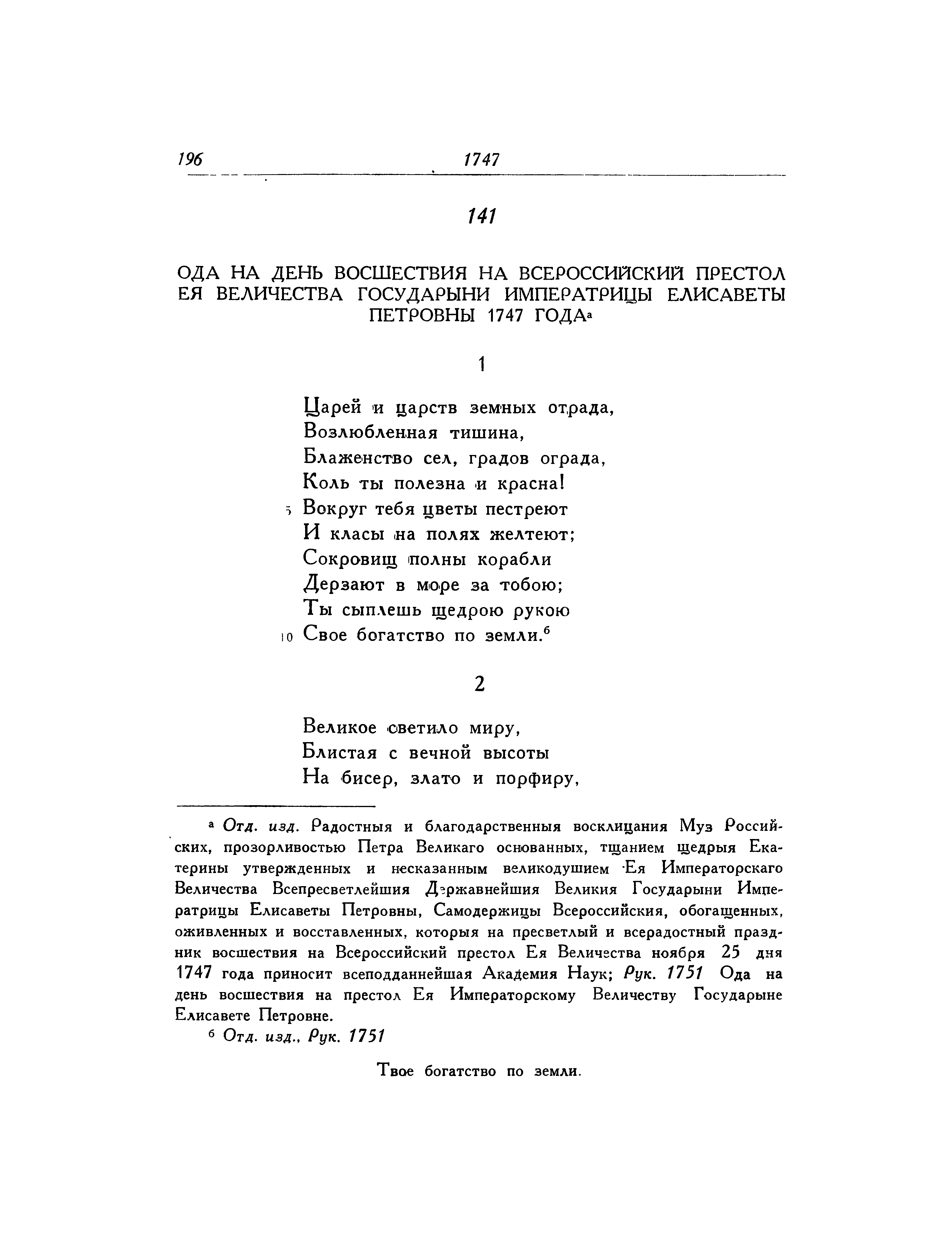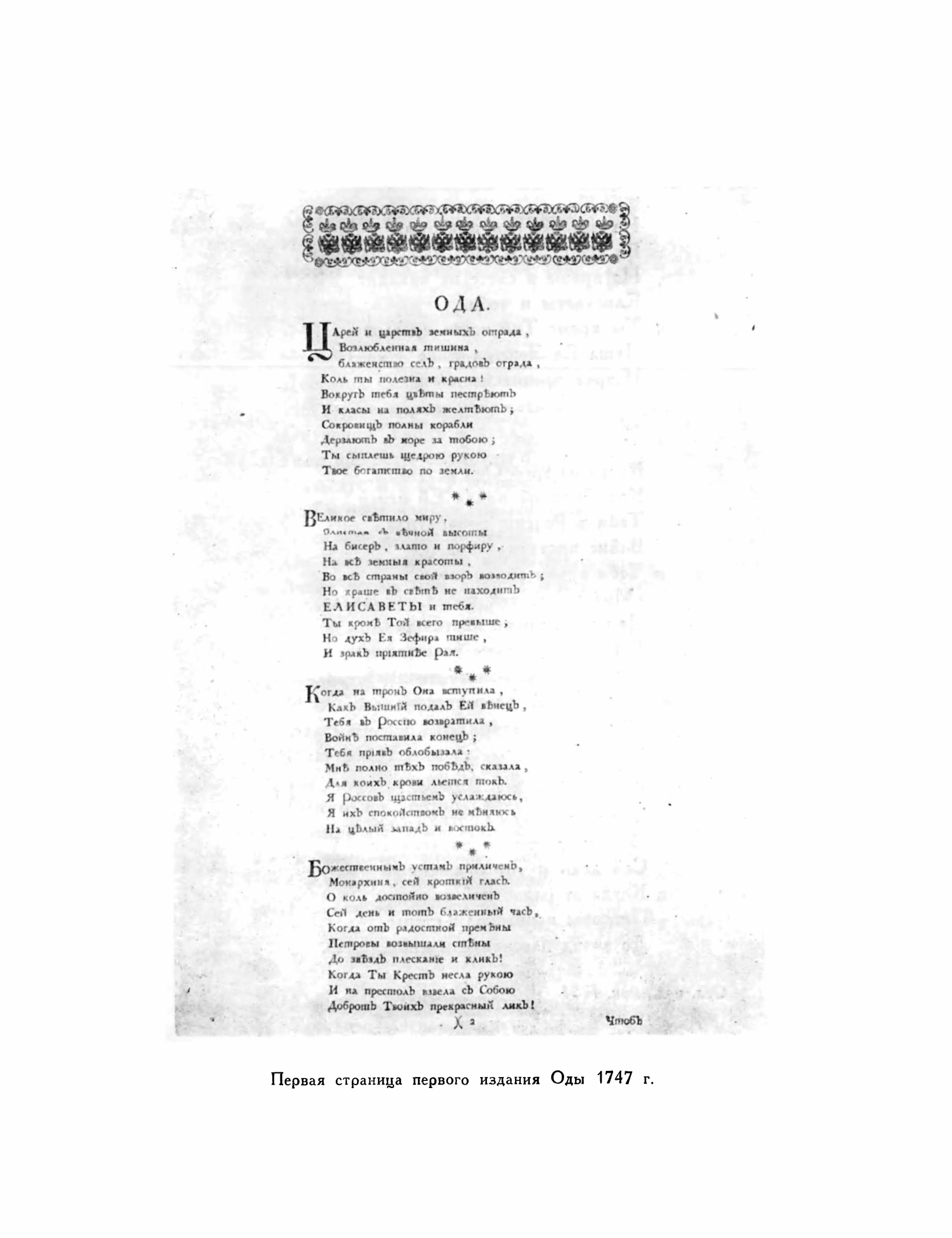 ОДА НА ДЕНЬ ВОСШЕСTВИЯ НА ВСЕРОССИЙСКИЙ ПРЕСTОЛ ЕЯ ВЕЛИЧЕСTВА ГОСУДАРЫНИ ИМПЕРАTРИЦЫ ЕЛИСАВЕTЫ ПЕTРОВНЫ 1747 ГОДА