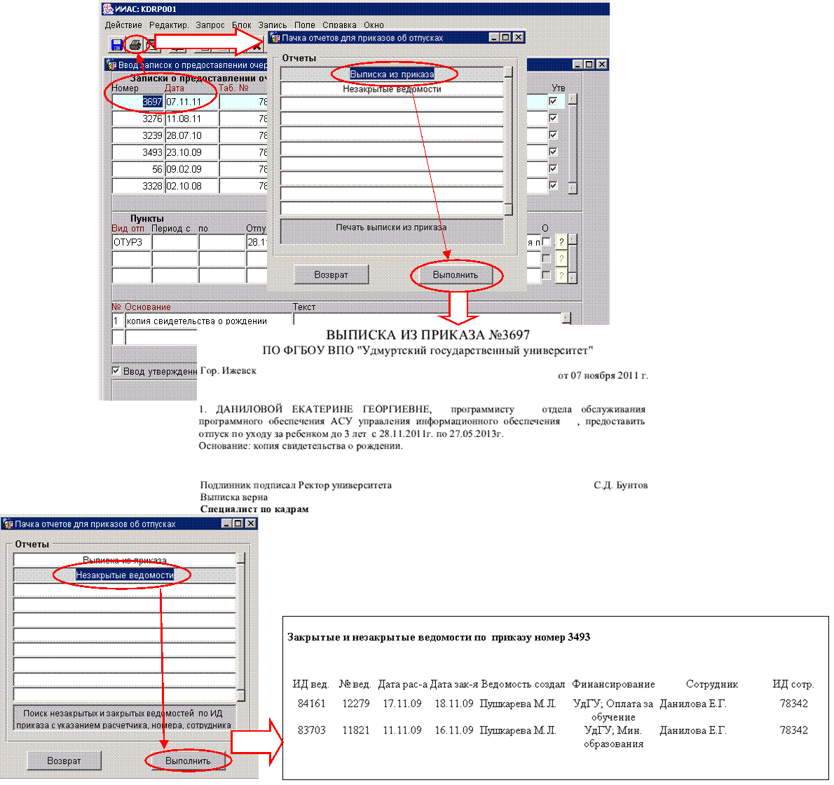записок можно сформировать выписку из приказа и посмотреть, есть ли начисления